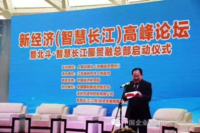 中企国际交流网记者讯:2016年1月9日上午,由人民日报社《中国经济周刊》主办,***苏省扬中市人民政府承办,中国经济研究院支持,中国企业家国际交流协会、中国国际新经济联合会和深圳市波特控股有限公司协办的新经济(智慧长***)高峰论坛在***苏省扬中市盛大开幕,中央政策研究室经济研究局、国务院发展研究中心、交通部、科技部相关领导、经济学界专家学者及金融服务机构代表等300余人莅临大会,共商新时期、新经济、新模式、新商机、新发展,共同探讨“长***经济带”科学发展、智慧开发大计。