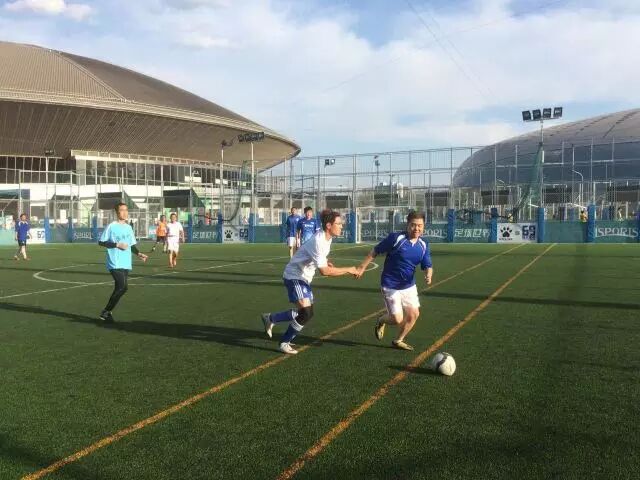 6月11日晚上五点,天津市文化传媒商会与天津广播扭腰哥队的友谊赛在体育中心举行。比赛中,虽然天气炎热,但队员们还是体现出了很好的竞技状态,双方通过足球锻炼了身体并加深了友谊。