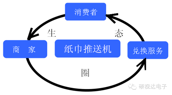 这些设计使纸巾的发放形成了一个良性循环系统——以免费为口号吸引用户主动获取纸巾,以自动售卖机为载体进行投放,以系统为核心控制纸巾的分发并提供连接商家与用户的平台,最终通过装机、领纸和扫码行为获取用户大数据。