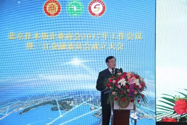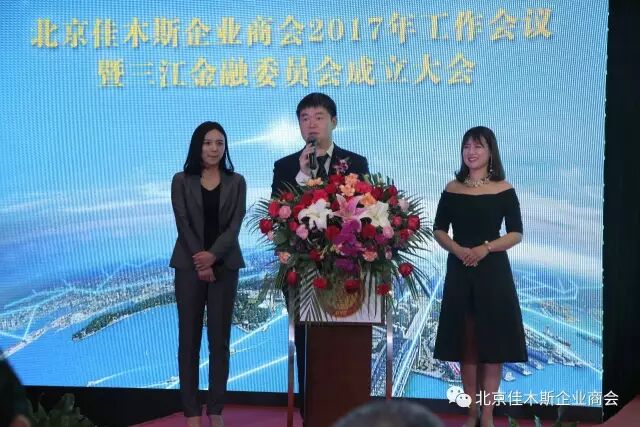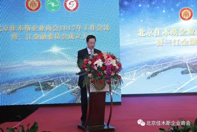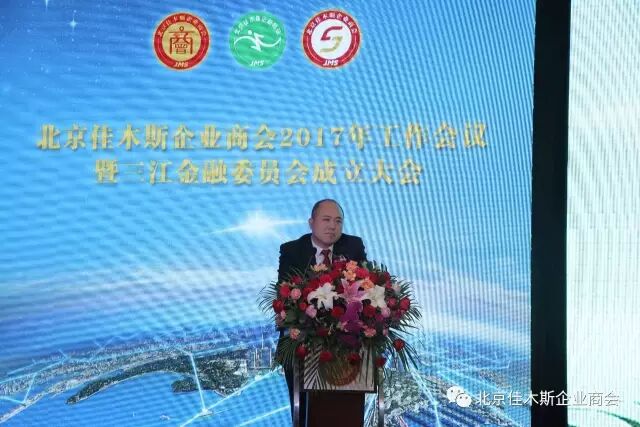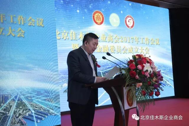 北京佳木斯企业商会会长周立群讲话首先对商会三江金融委员会成立表示祝贺。接下来,他回顾了商会三年来的工作并展望了2017年商会工作。