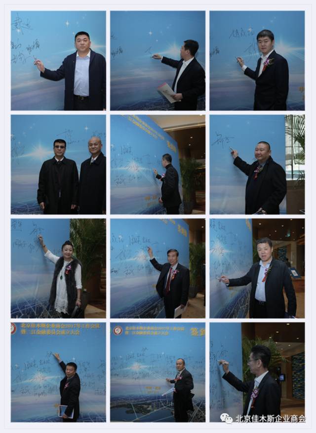 佳木斯市常务副市长马里、市政府秘书长王凯、佳木斯市技师学院党委书记、人社局局长白耀光、市财政市金融办 市人民银行、工信委、商务局主要负责人等及黑龙江省哈尔滨市、牡丹江市、大庆市、双鸭山市、伊春市、七台河市、黑河市、绥化市、鹤岗市等兄弟地市主要领导等,北京金融业界各级领导专家、学者和企业家,北京佳木斯企业商会以及商会医委会代表共同出席本次大会,见证了这个激动喜庆的时分。
