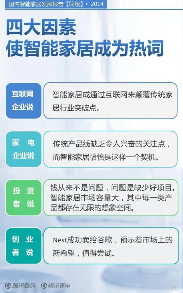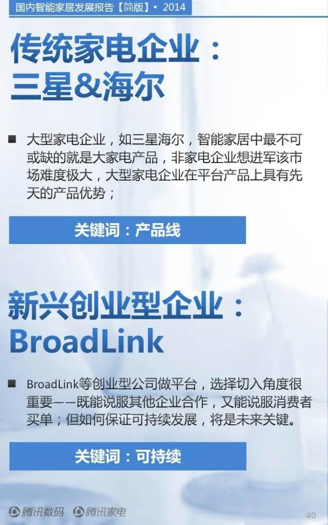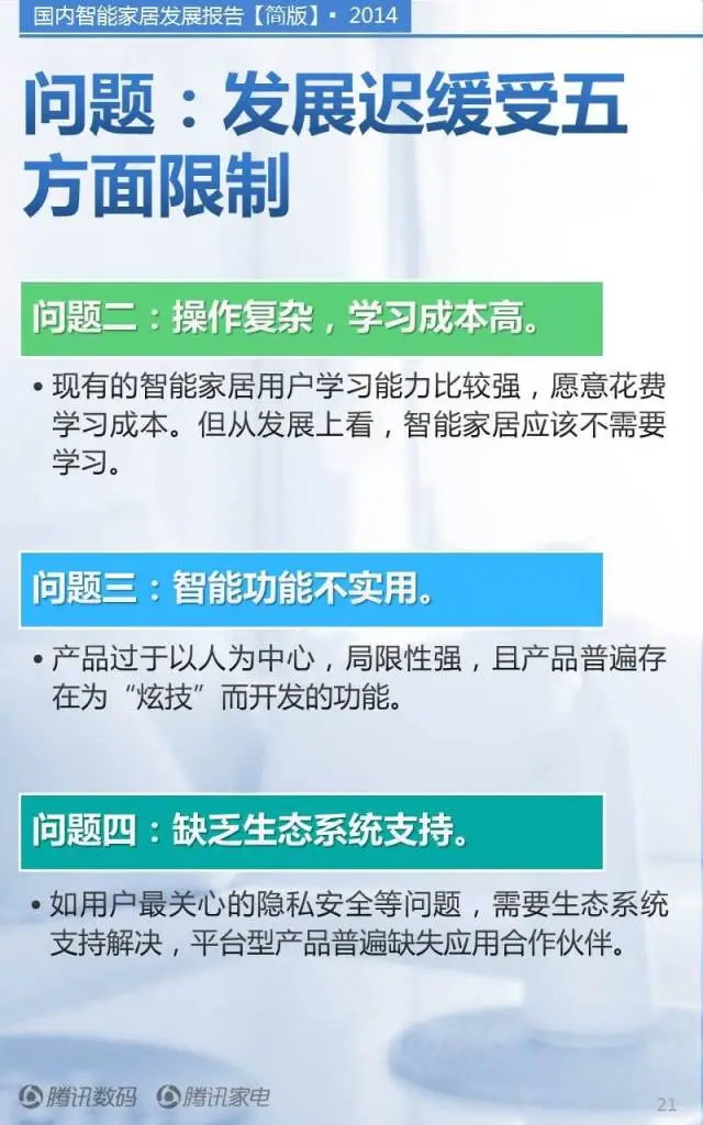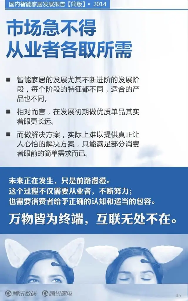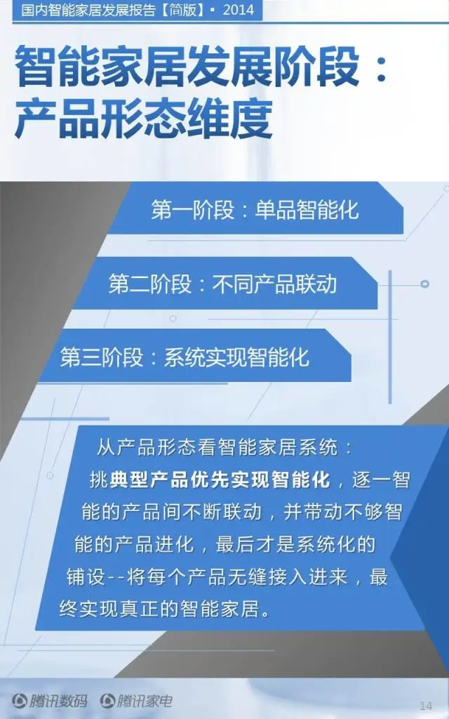 智能家居的发展将是一个相当漫长的过程,2014年对于智能家居来说只能算刚刚迈出第一步,如何保持持续发展并在接下来几个阶段获得同样的关注度则需要从业者认真思索。