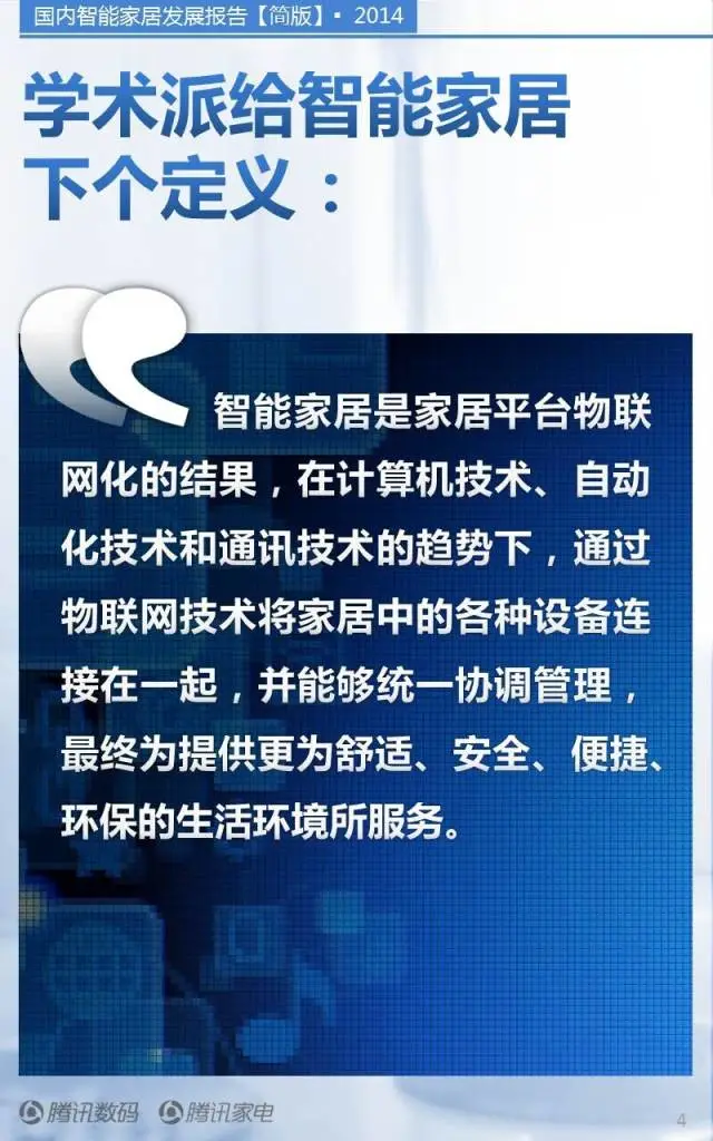 如果给智能家居下一个定义,我认为是这样:智能家居是家居平台物联网化的结果,在计算机技术、自动化技术和通讯技术的趋势下,通过物联网技术将家居中各种设备连接在一起,并统一协调管理,最终为提供更为舒适、安全、便捷、环保的生活环境所服务。