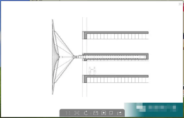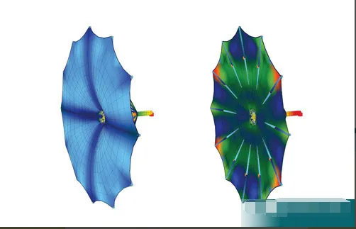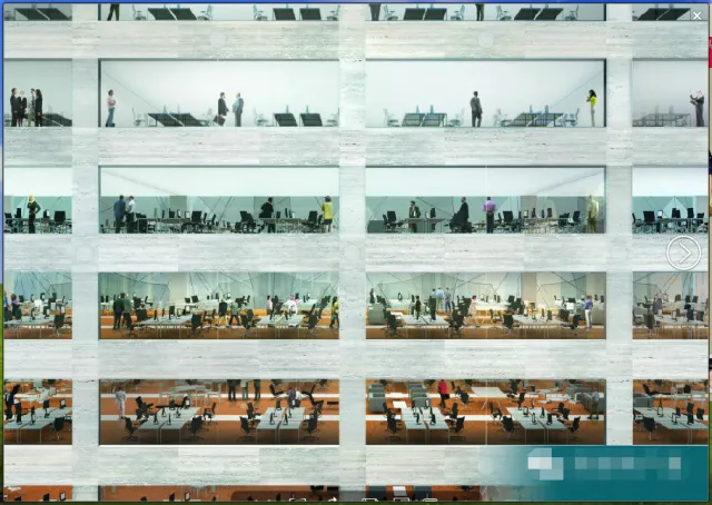 这些遮阳篷的直径近15米, 可以快速展开,用短短的几分钟就能把大楼遮盖住。总部大楼的外观能瞬间改变,楼的外观是半透明的,有点X光的感觉,突出独特的设计线条。
