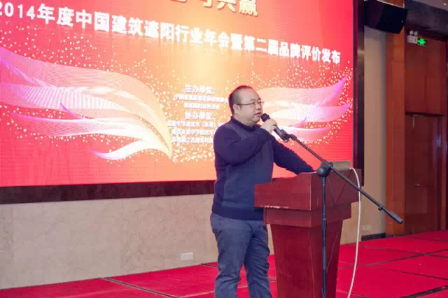 建筑遮阳年度饕餮大餐——2014中国建筑遮阳行业年会暨第二届品牌评价发布活动于2015年1月12日在昆山成功召开,大会由秘书长王军主持,中国建筑装饰装修材料协会会长郭一鸣、原建设部副部长姚兵出席会议并讲话,国家发改委城市与小城镇发展中心副主任乔润令、住房和城乡建设部国际合作处处长张小玲、中国房地产协会副会长童悦仲、国家建筑设计大师赵冠谦等出席会议并做了主旨报告,来自全国各地的200余名代表参加了会议。本届年会参与媒体有人民网、新华网、搜房、腾讯、网易、搜狐、新浪、中国建筑遮阳网和中国建设报、中华建筑报、中国建材报、中国房地产报等媒体给予宣传报道。年会由金星宇节能技术(苏州)有限公司、南京金星宇节能技术有限公司和苏州英之杰建筑科技有限公司共同承办。